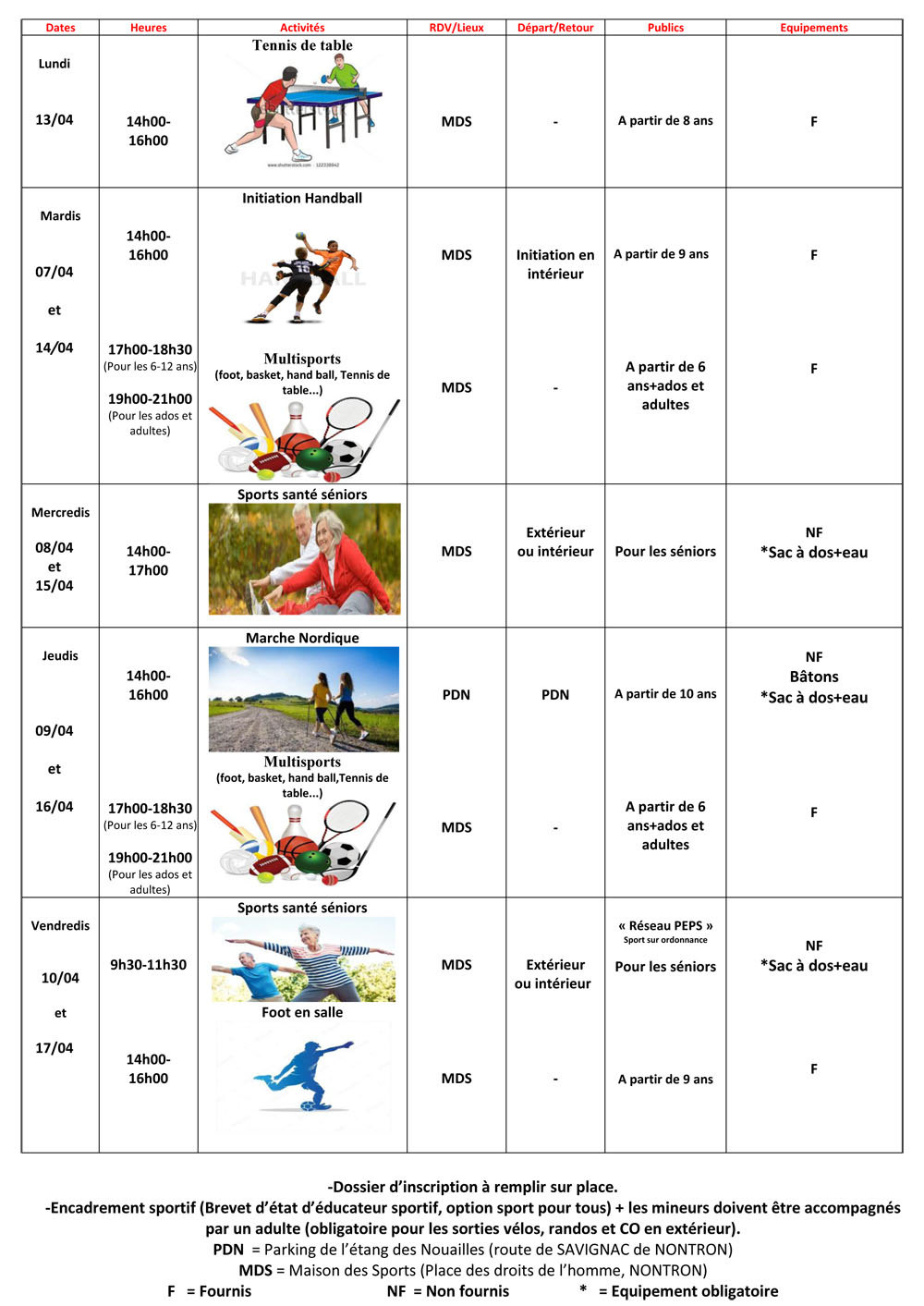 Animations gratuites du Service des Sports de la Mairie de Nontron