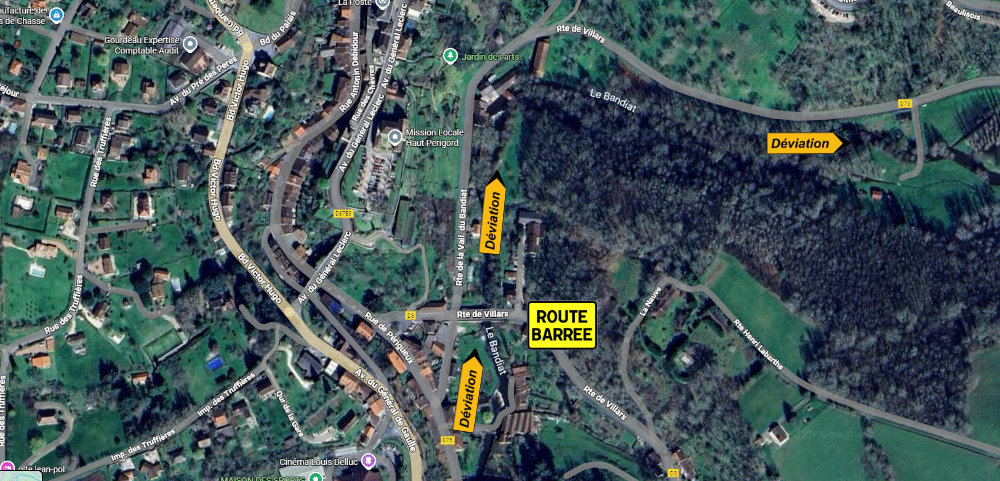 Une déviation est mise en place par la route de la Vallée du Bandiat, jusqu’à la fin des travaux estimés à la mi-février 2026.